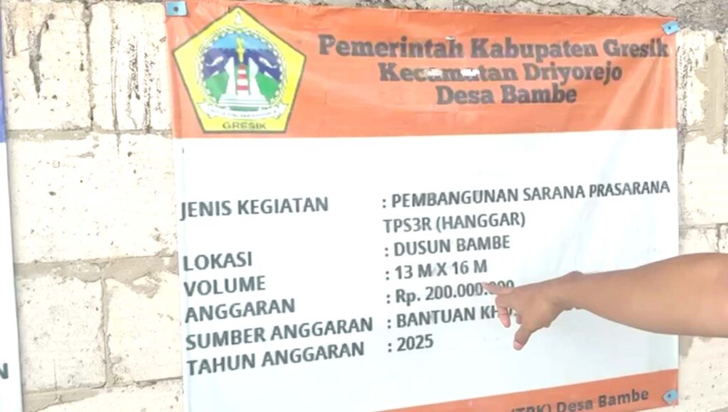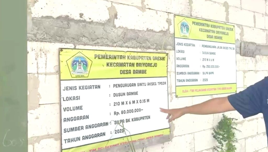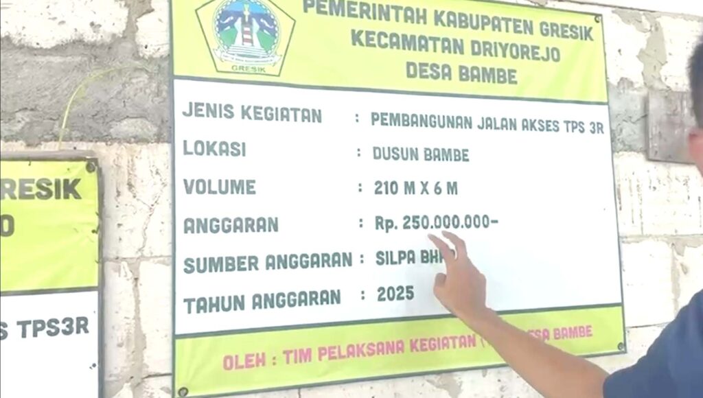 GRESIK, Mediaabj – Tim Investigasi Media Suara Publik kembali turun ke lapangan di Desa Bambe, Kecamatan Driyorejo, Kabupaten Gresik, menindaklanjuti aduan masyarakat terkait dugaan kejanggalan penggunaan sejumlah anggaran desa pada Tahun Anggaran 2025.