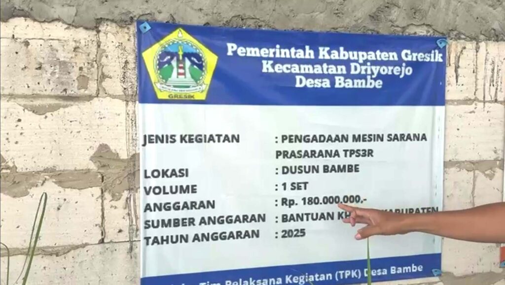 Selain itu, Desa Bambe juga disebut menerima BK Kabupaten sebesar Rp 180 juta untuk pengadaan mesin sarana prasarana TPS3R. Namun, saat tim melakukan pengecekan di lokasi dan gudang, peralatan tersebut tidak ditemukan.