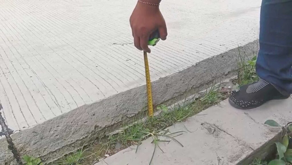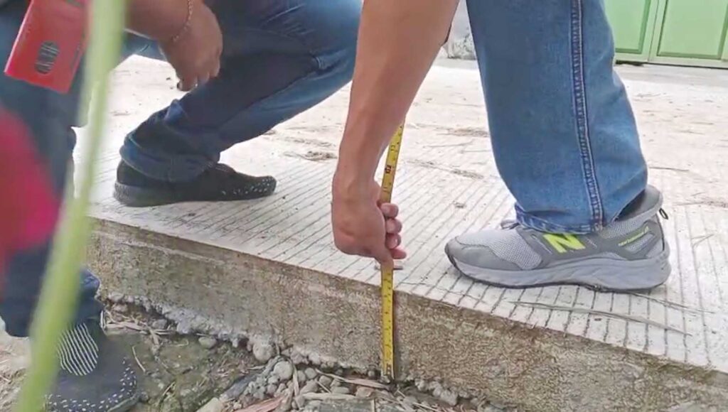 Tim juga meninjau proyek rabat beton lain di dusun yang sama dengan anggaran hampir Rp53 juta. Pada papan proyek tertera dua volume pekerjaan dengan ketebalan 15 sentimeter. Namun hasil pengukuran di lapangan menunjukkan ketebalan rata-rata hanya 13 hingga 14 sentimeter.
