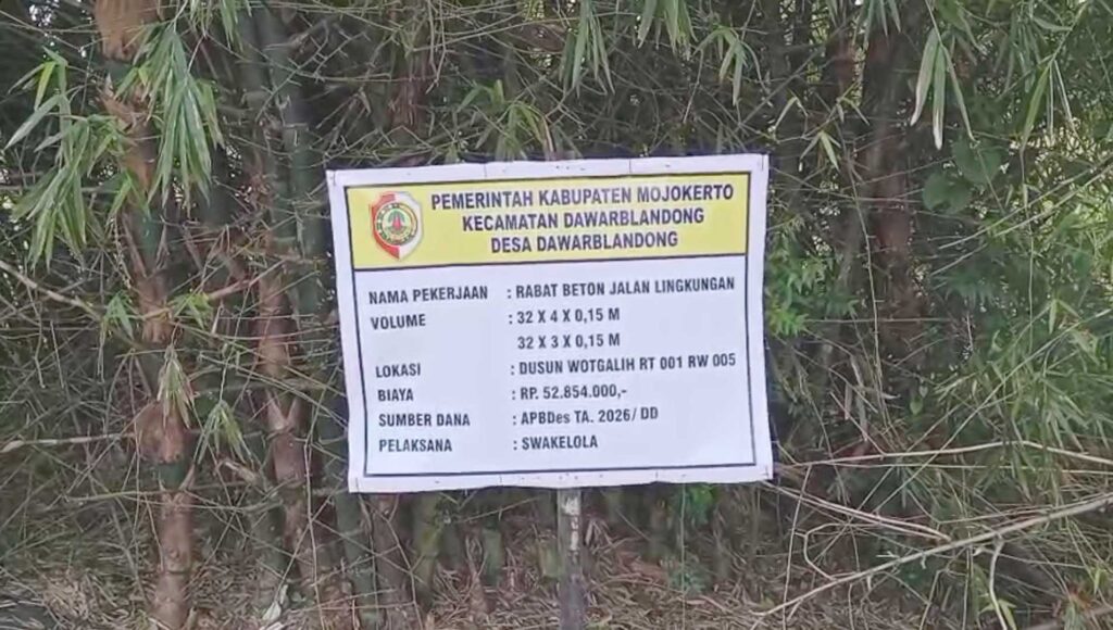 MOJOKERTO, Mediaabj – Tim investigasi Media Suara Publik melakukan penelusuran langsung ke Desa Dawarblandong, Kecamatan Dawarblandong, Kabupaten Mojokerto, menindaklanjuti aduan masyarakat terkait dugaan markup anggaran serta ketidaksesuaian sejumlah proyek pembangunan desa.