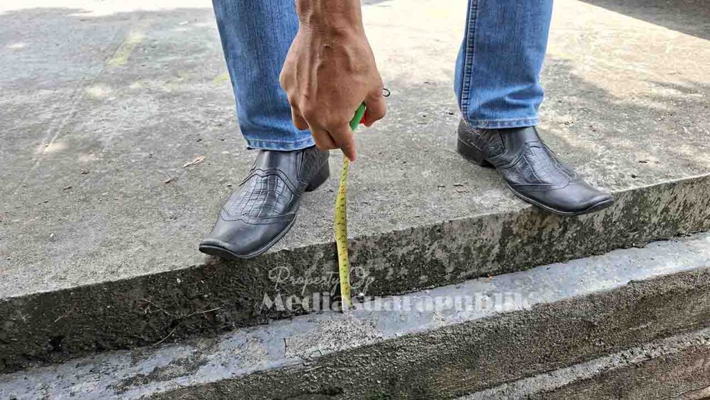 “Dengan kondisi seperti itu, kami menduga jika penyerapan anggaran saat melakukan pembangunan ini hanya kurang lebih 60 juta. Hal itu dikuatkan dengan tebal bangunan yang tidak rata, hasil pengukuran kami hanya 8–9 cm,” tambahnya.