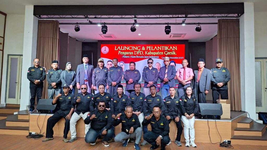 GRESIK, MediaABJ- Aliansi Alam Bersatu Jaya Indonesia (ABJI) menggelar acara pelantikan pengurus Dewan Pimpinan Daerah (DPD) Kabupaten Gresik, Rabu (26/11/25). Acara yang berlangsung di Gedung Nasional Indonesia (GNI) ini dihadiri oleh puluhan undangan dari berbagai daerah, serta perwakilan dari DPP ABJI. Pelantikan ini menandai babak baru bagi ABJI di Kabupaten Gresik, dengan tujuan untuk memperjuangkan kepentingan rakyat serta turut berperan dalam pembangunan nasional.